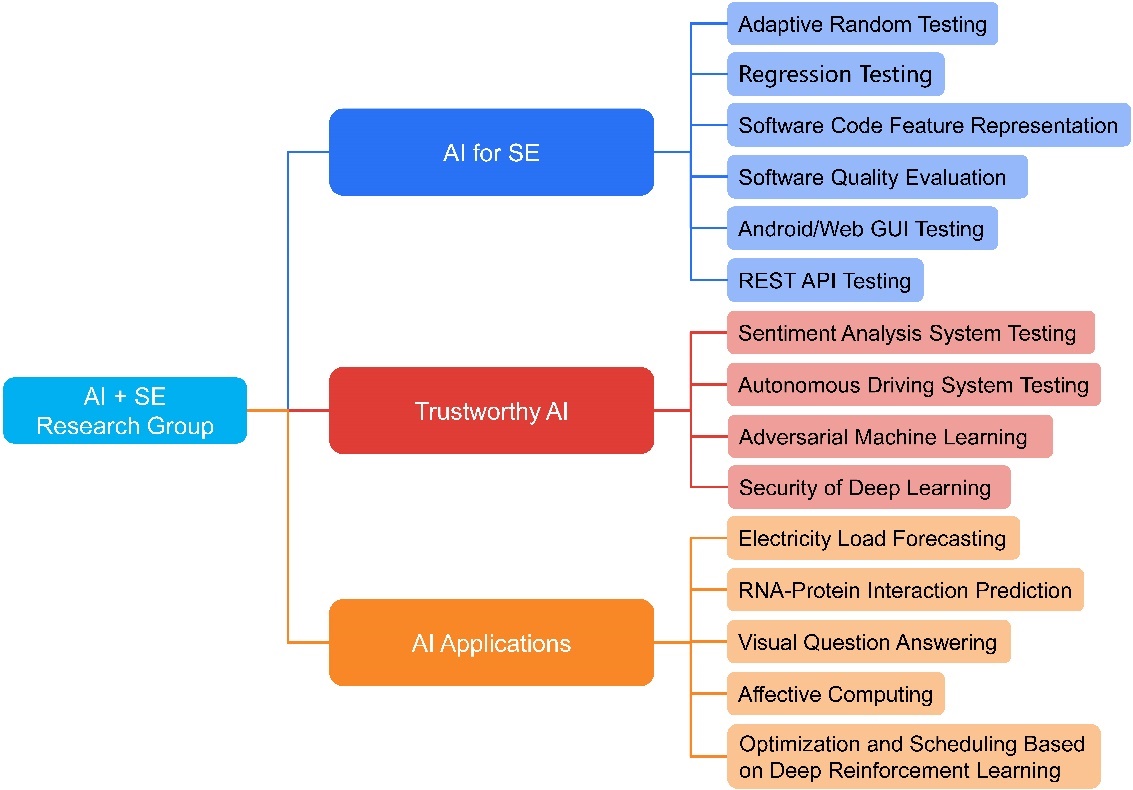 The Artificial Intelligence and Software Engineering research is led by Associate Professor Rubing Huang. It mainly explores artificial intelligence (AI), software engineering (SE), and the cross-applications of AI and SE. Research contents mainly include intelligent software engineering, trustworthy AI, software testing and maintenance, computer vision and image processing, and AI applications.