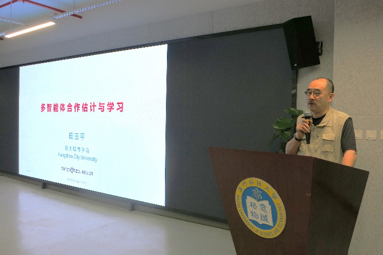 In the lecture, Professor Tian Yu Ping started from the feedback structure of machine learning, and he reviewed the basic framework and algorithm essence of estimation and learning methods such as minimum variance estimation, online convex optimization, and reinforcement learning. It analyzed some of the problems that may be encountered in the development process from single agent systems to multi-agent systems, and from centralized algorithms to distributed algorithms, and explored the application of distributed estimation and learning methods in multi-agent cooperative positioning, cluster scheduling, and other problems.