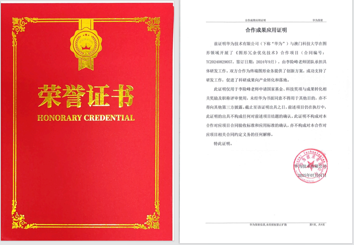 2025年12月31日,应华为2012实验室中央研究院未来终端部伍朝辉主任邀请,我校创新工程学院--计算机科学与工程学院李险峰副教授赴华为深圳总部,接受伍朝辉主任亲自颁发的《图形冗余优化技术》合作项目成果应用证明荣誉证书,并以《通用与透明的高负载场景流畅性优化框架》为题做了学术报告,进一步探讨未来的项目合作。