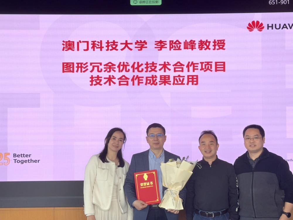 2025年12月31日,應華爲2012實驗室中央研究院未來終端部伍朝輝主任邀請,我校創新工程學院--計算機科學與工程學院李險峰副教授赴華爲深圳總部,接受伍朝輝主任親自頒發的《圖形冗餘優化技術》合作項目成果應用證明榮譽證書,並以《通用與透明的高負載場景流暢性優化框架》爲題做了學術報告,進一步探討未來的項目合作。