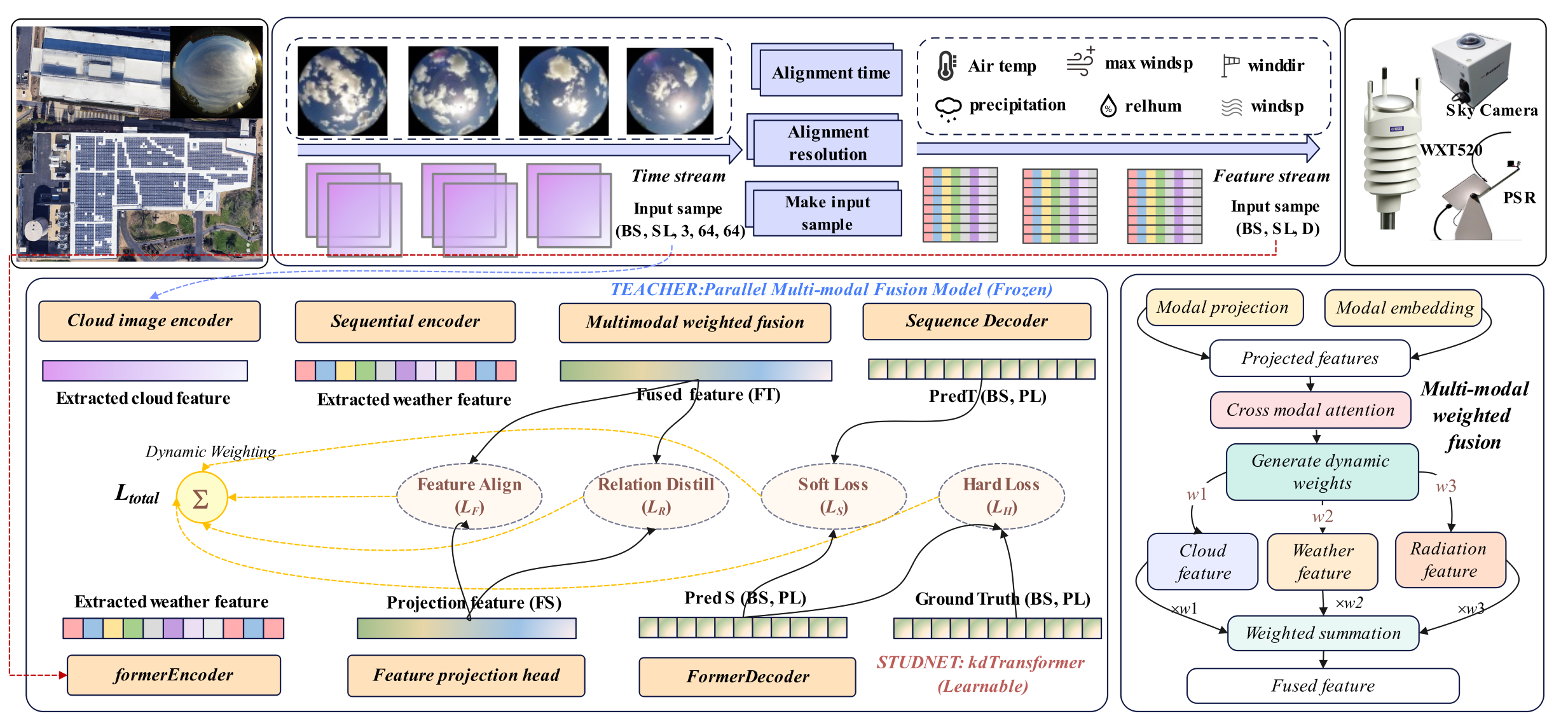太阳能预测最新研究成果发表于人工智能与信息融合领域的国际顶级期刊《Information Fusion》(影响因子:15.5,计算机科学学科JCR排名前1.7%,中国人工智能学会(CAAI)A类推荐期刊)。论文题为〈PMFM-kdTransformer: An enhanced multi-modal fusion architecture leveraging knowledge distillation for intra-hour solar irradiance prediction〉。论文提出了一种增强型多模态融合架构PMFM-kdTransformer,通过并行处理云图、气象数据、和辐照度序列,并结合知识蒸馏技术,在提升预测精度的同时显著降低了计算成本。该方法在七项评估指标上平局提升了7.92%,特别适用于缺乏昂贵全天空成像仪的应用场景,为光伏电站的实时功率预测提供了实用解决方案。