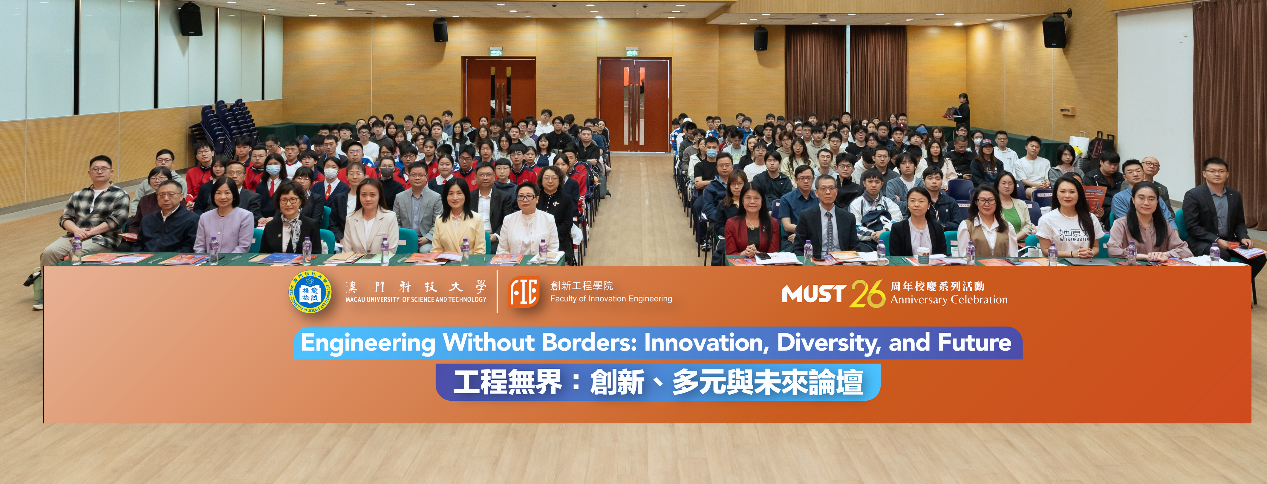 On the occasion of the 26th anniversary of the Macau University of Science and Technology (MUST), the Faculty of Innovation Engineering (FIE) hosted the "Engineering Without Borders: Innovation, Diversity, and Future" forum on March 20, 2026. Themed around "Innovation, Diversity, and Future," the forum placed special emphasis on fostering diversity within the engineering and technology sectors. It aimed to break down gender barriers, encourage greater participation of women in engineering and technology, and cultivate an inclusive industry ecosystem—aligning with the global trend toward gender equality and the recognition of women's contributions, thereby injecting new momentum into the high-quality development of the engineering field.